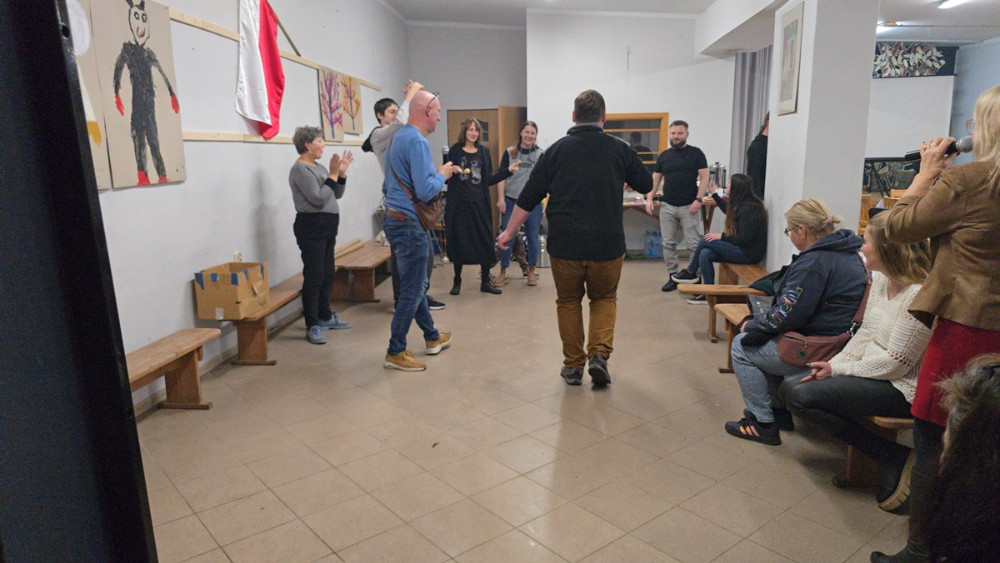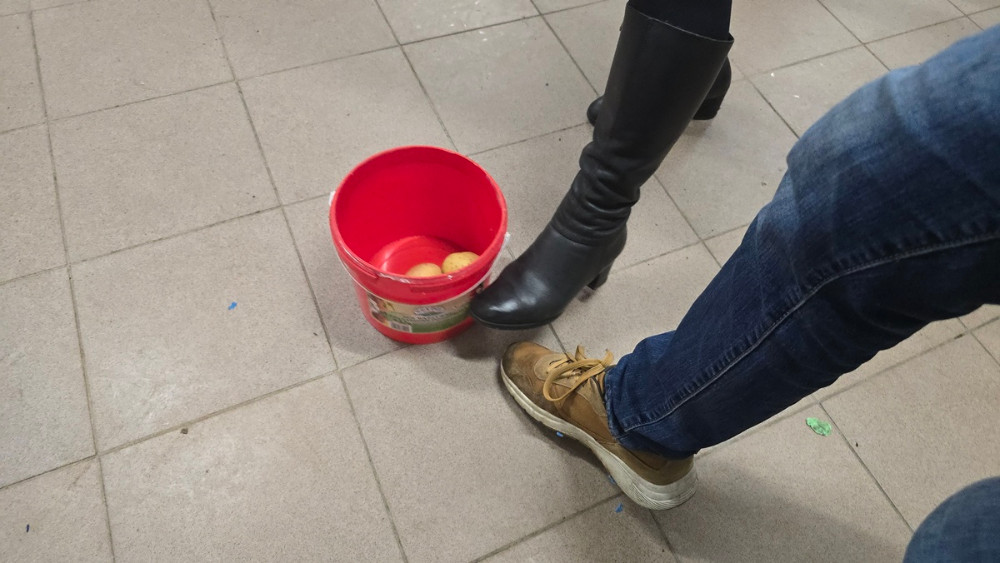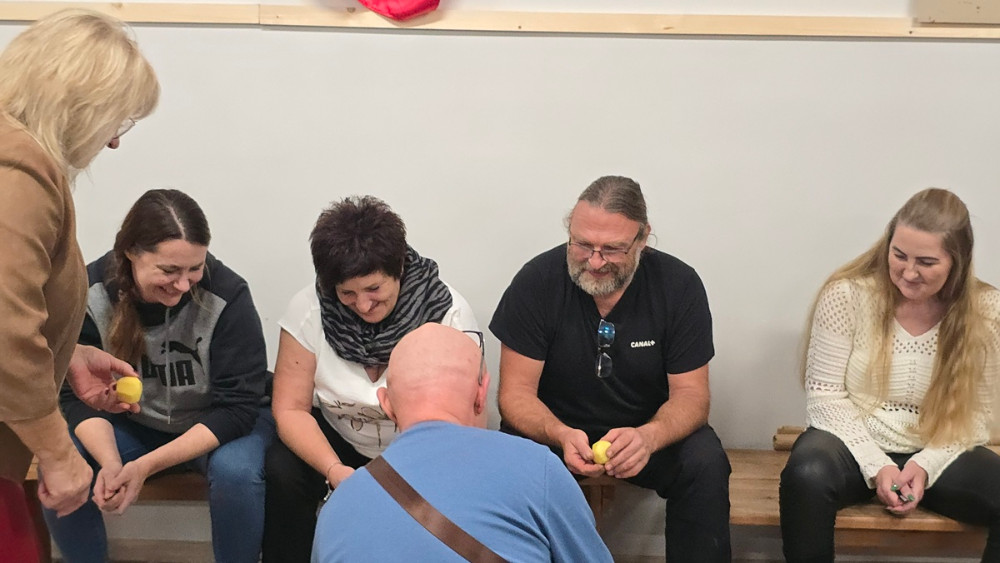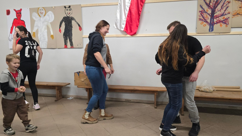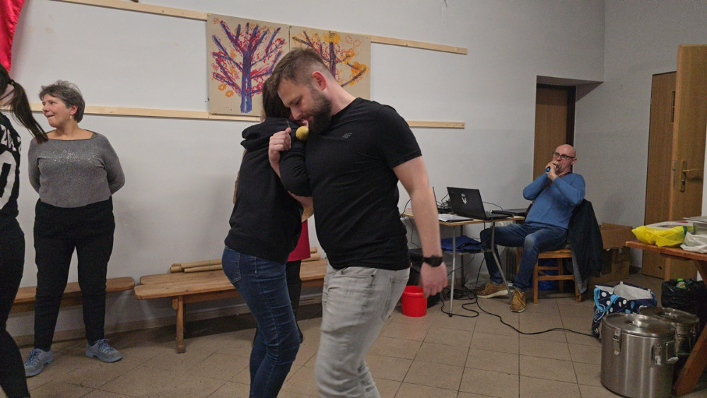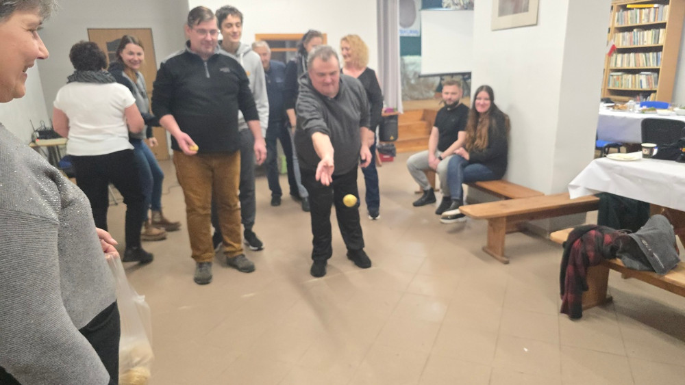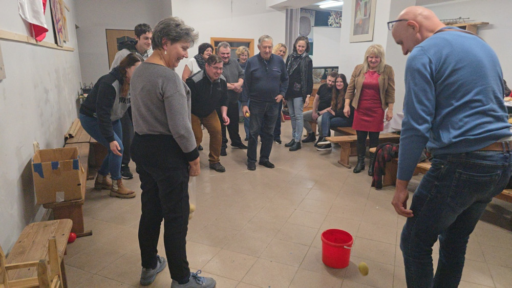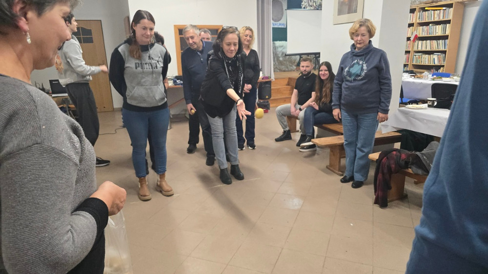 Pierwsza zabawa grupowa: rzut ziemniakiem do kubła