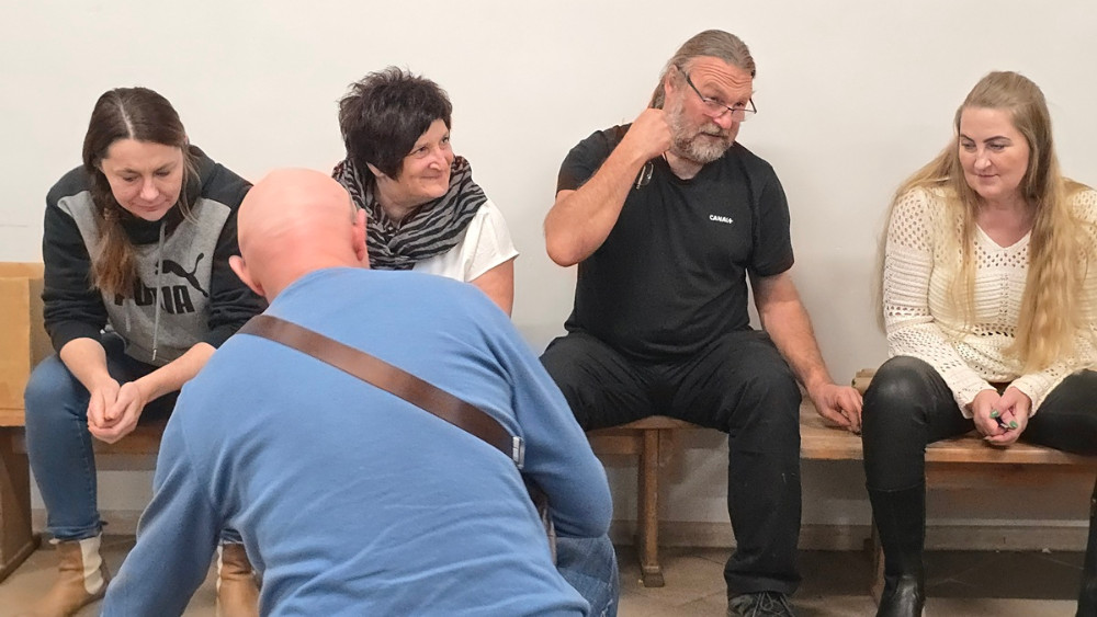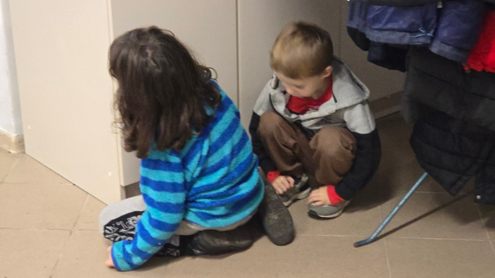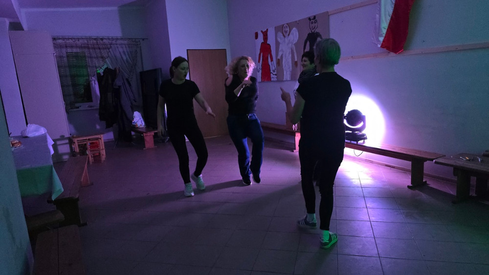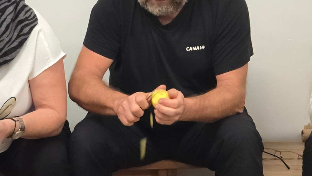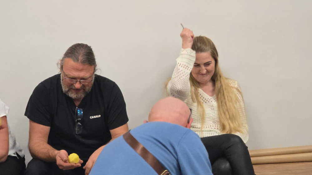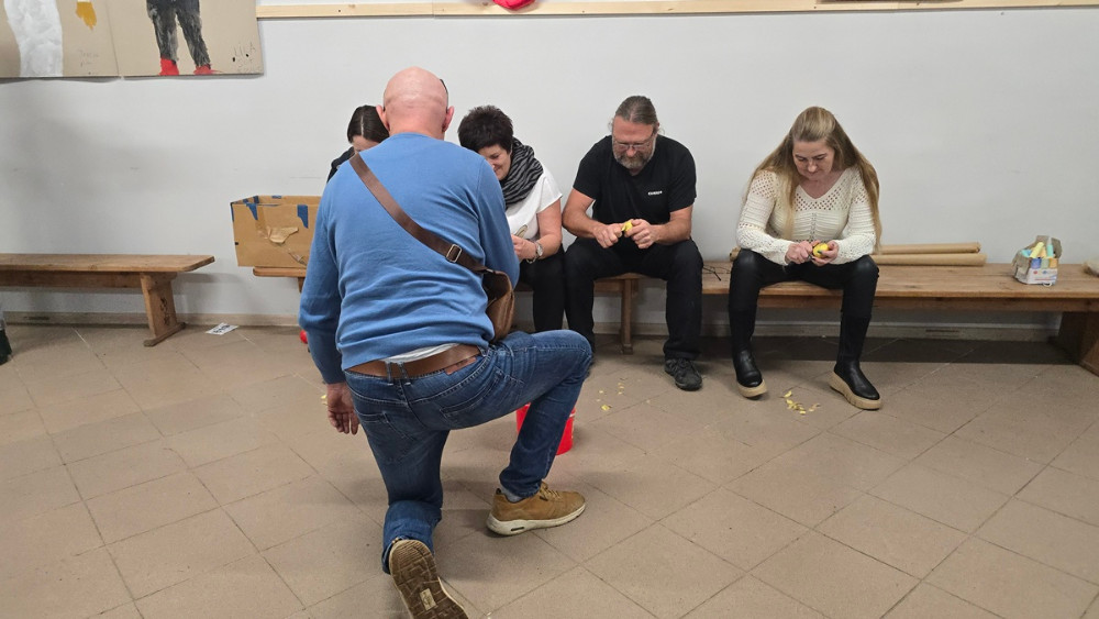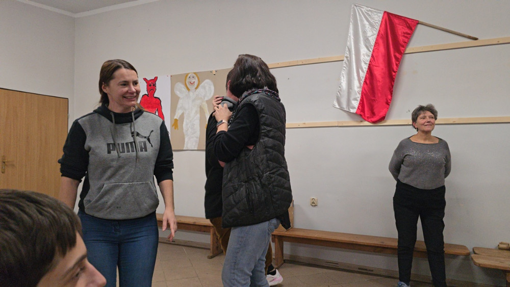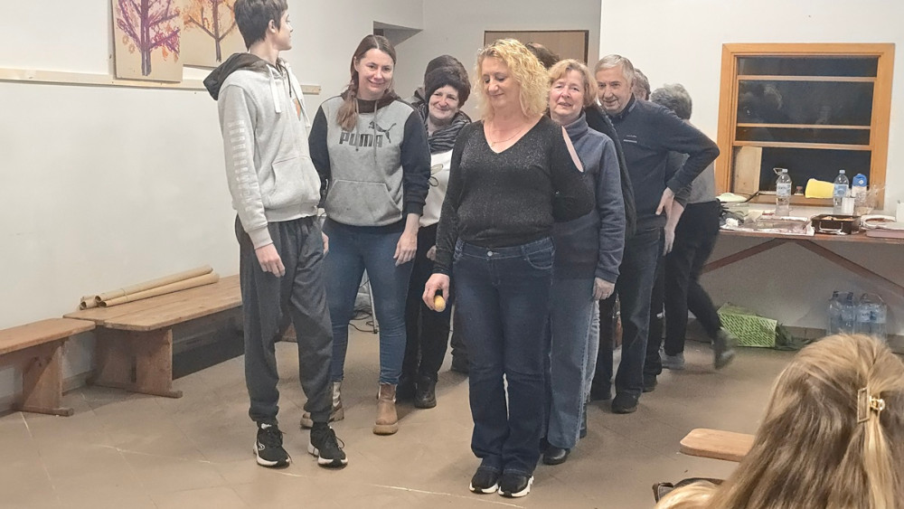 Pierwsza zabawa grupowa: rzut ziemniakiem do kubła
