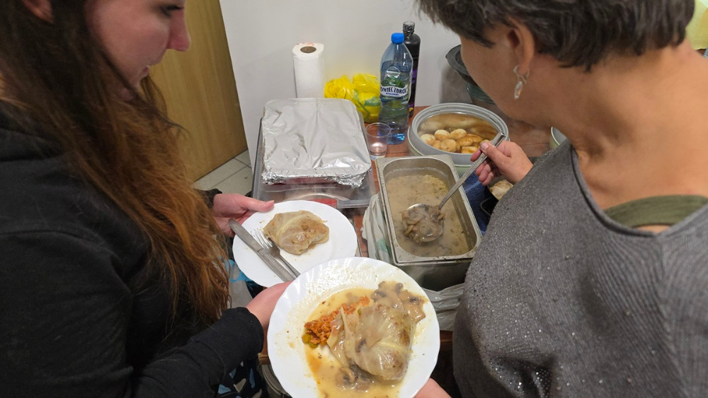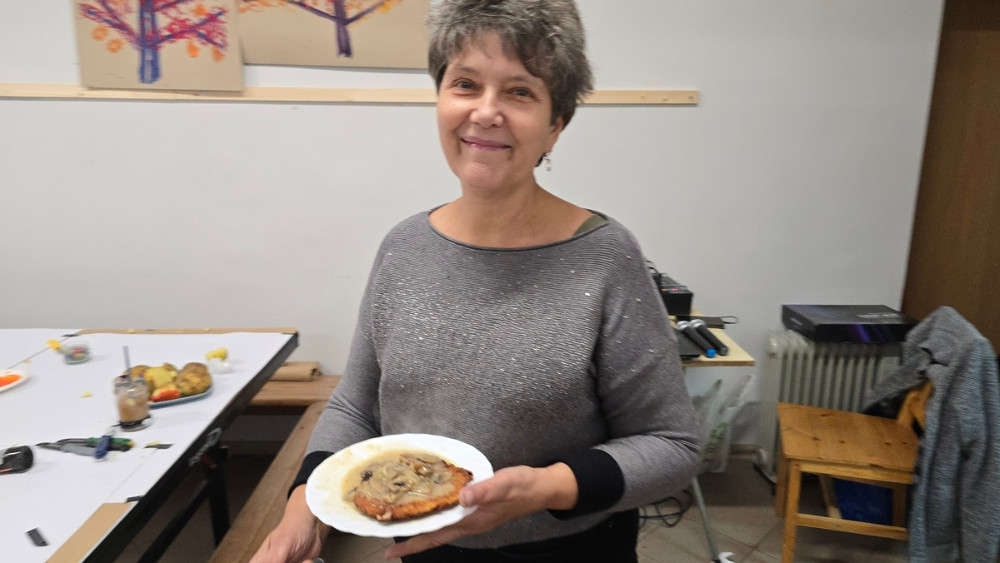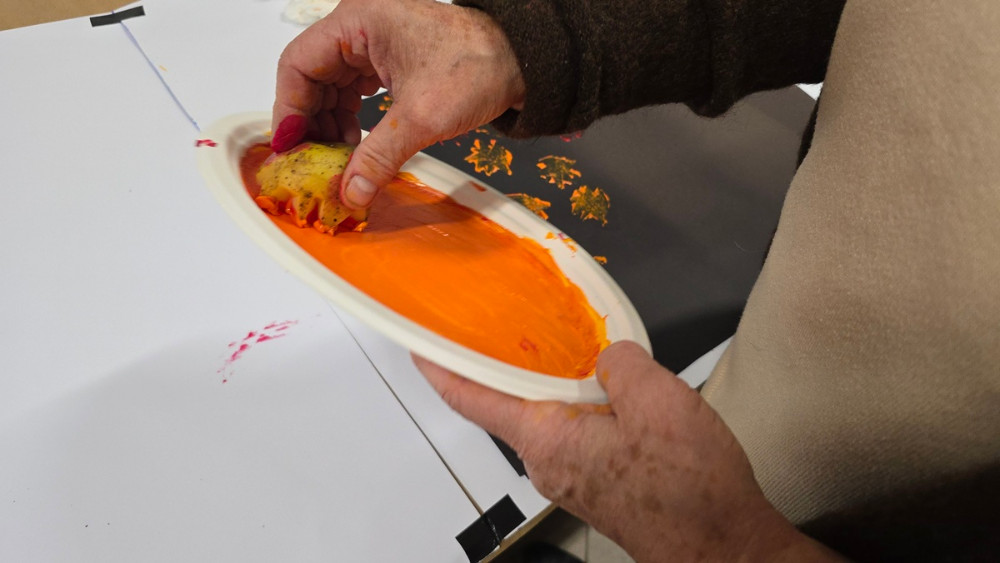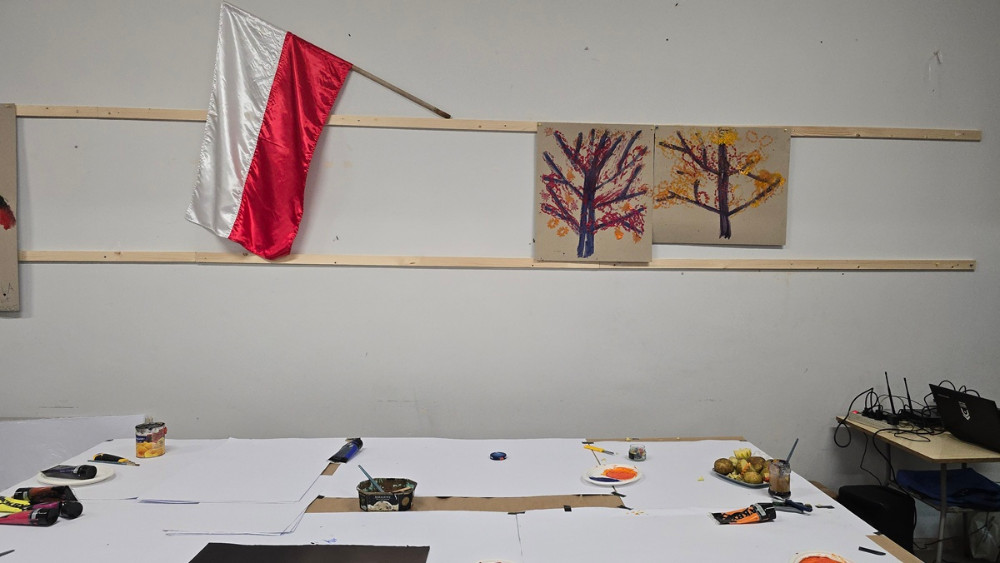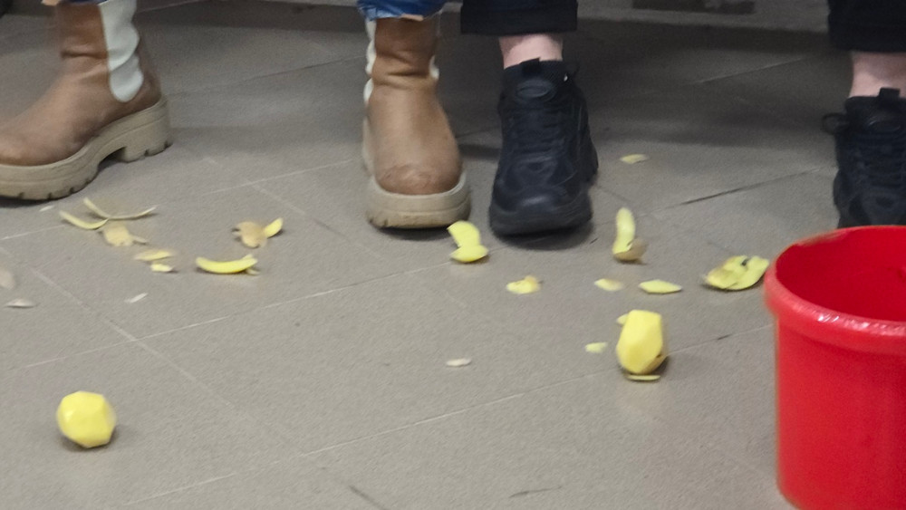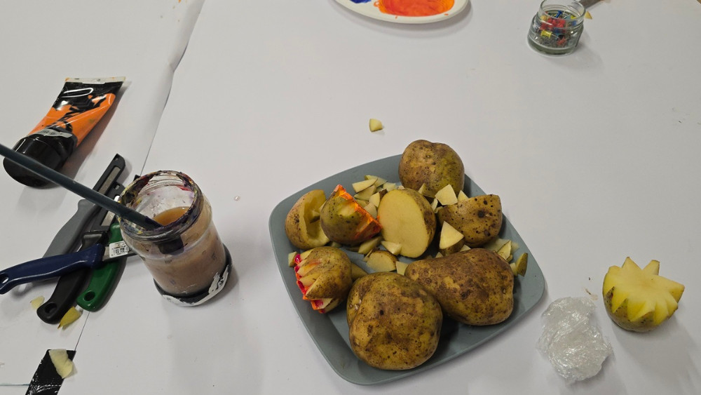 Ewa pracuje: malownie plakatów o ziemniakach.