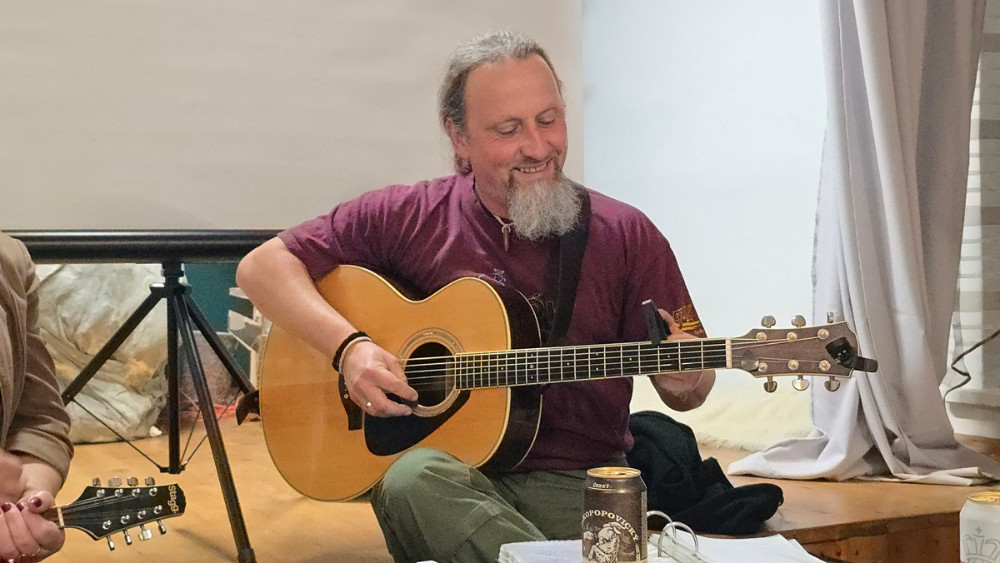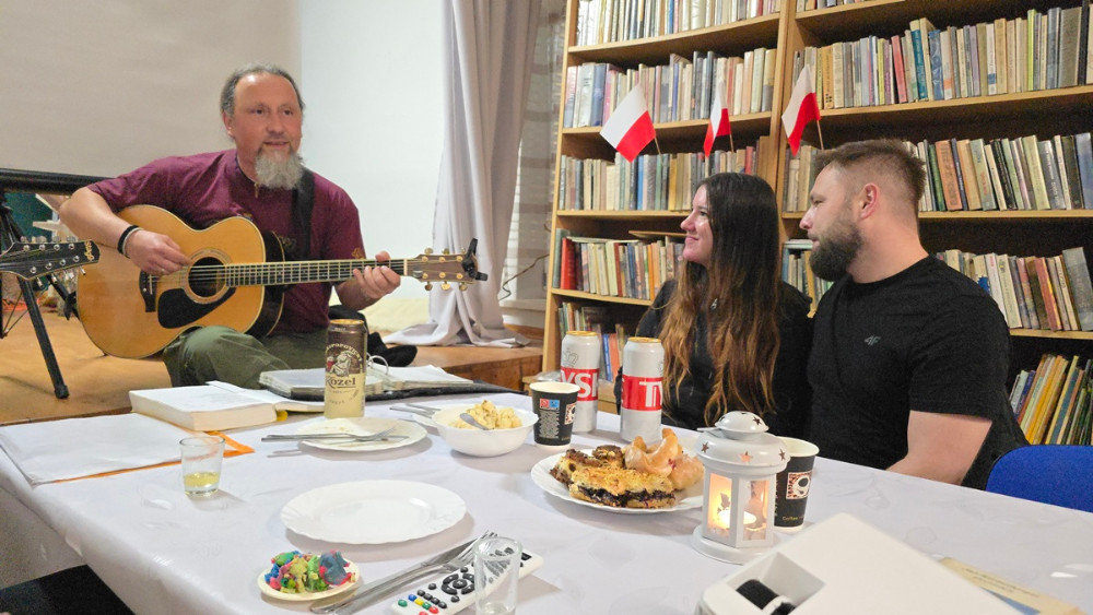 Teresa i Paweł grają i śpiewają pieśni patriotyczne
